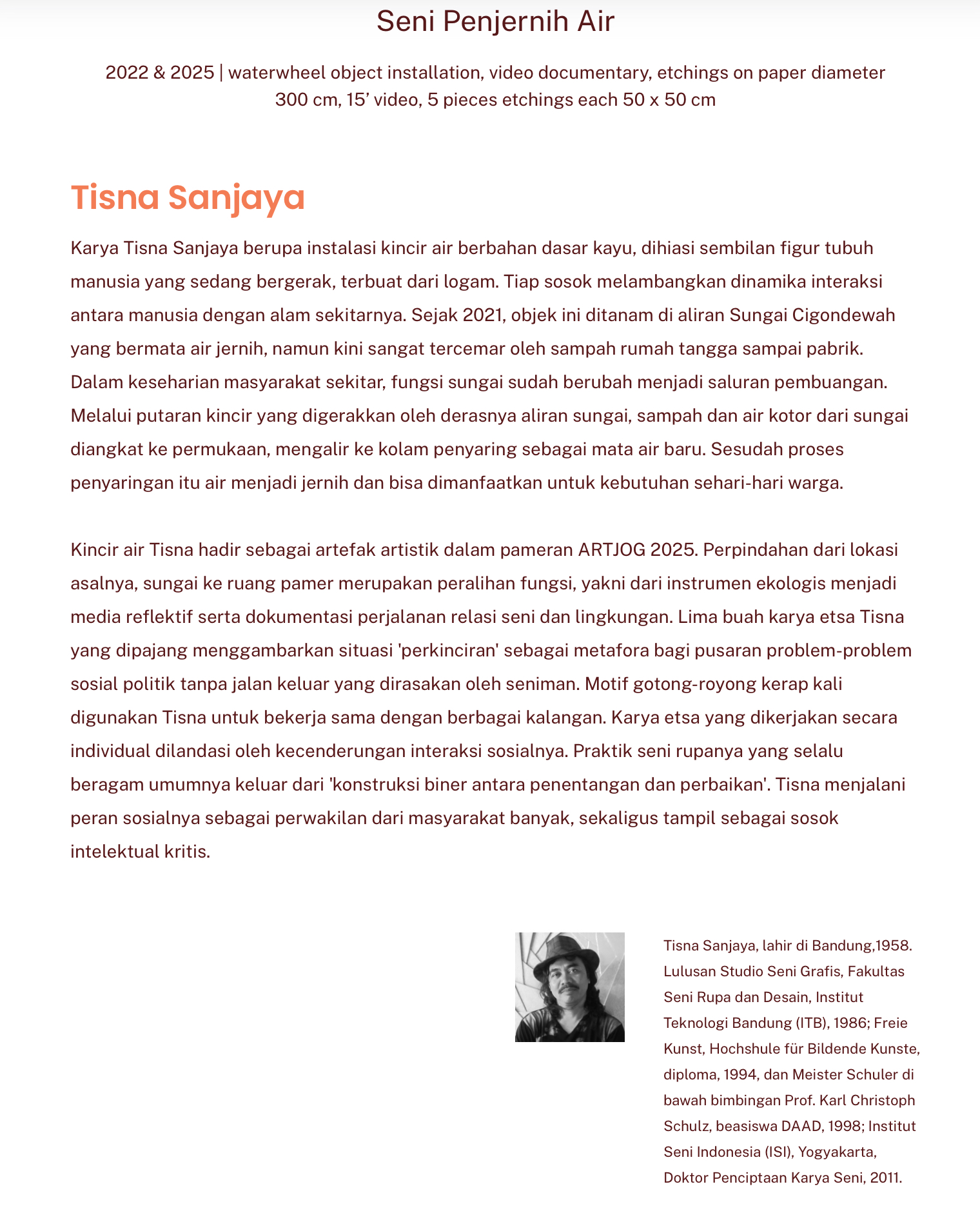 Sangat menyita perhatianku. Karya seni berjudul “Seni Penjernih Air” karya