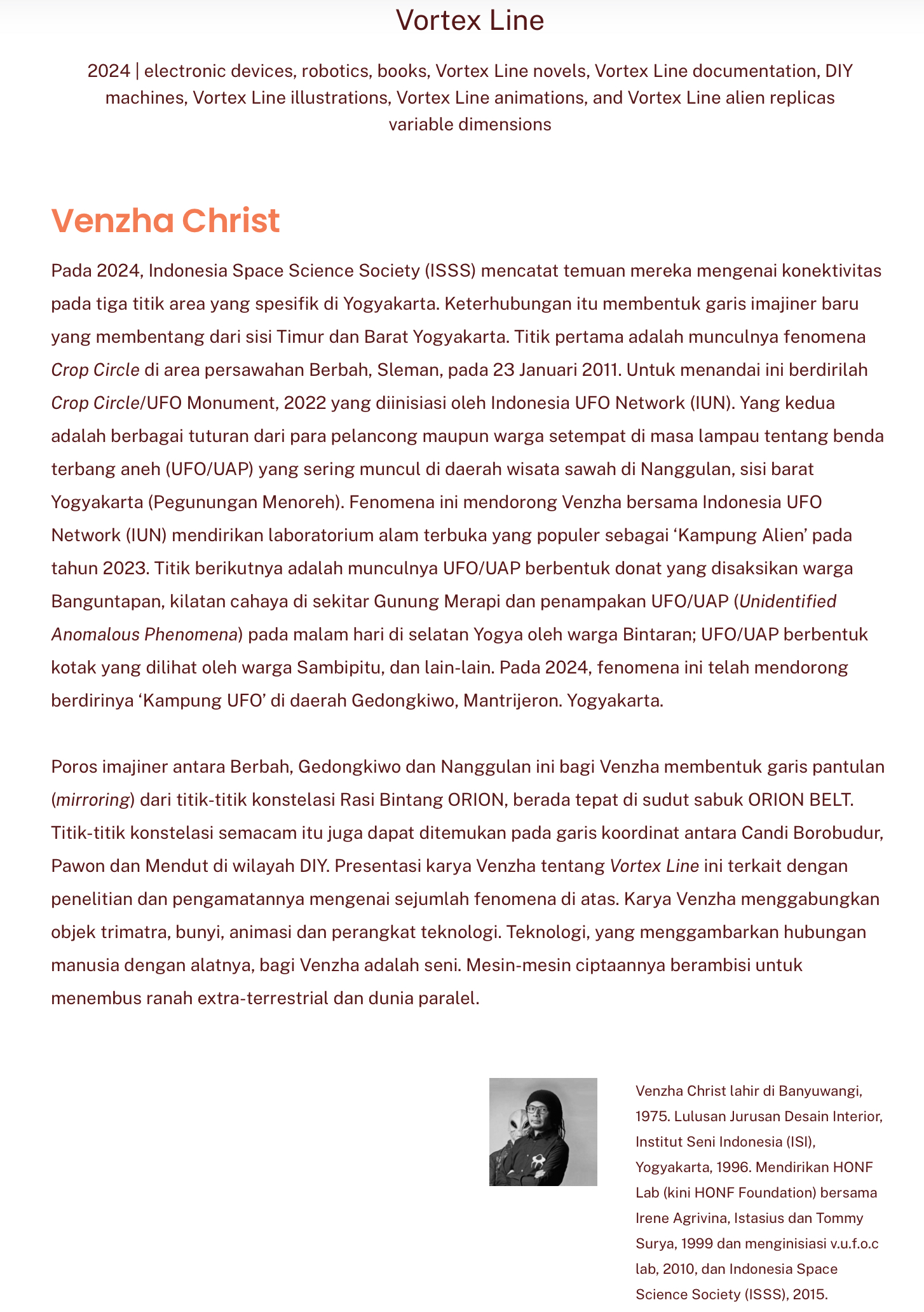 Mas Venzha ini ternyata salah satu orang yg haqqul yaqiin akan adanya UFO. Keyakinannya diperkuat dengan munculnya crop circle, penampakan UFO berkali-kali di Jogja. Dari yang berbentuk donat, sampe kotak. Bahkan dia sampe bikin laboratorium tentang UFO dan science. Di Jogja fenomena UFO memang sesering itu, sampai ada yg namanya Kampung UFO.